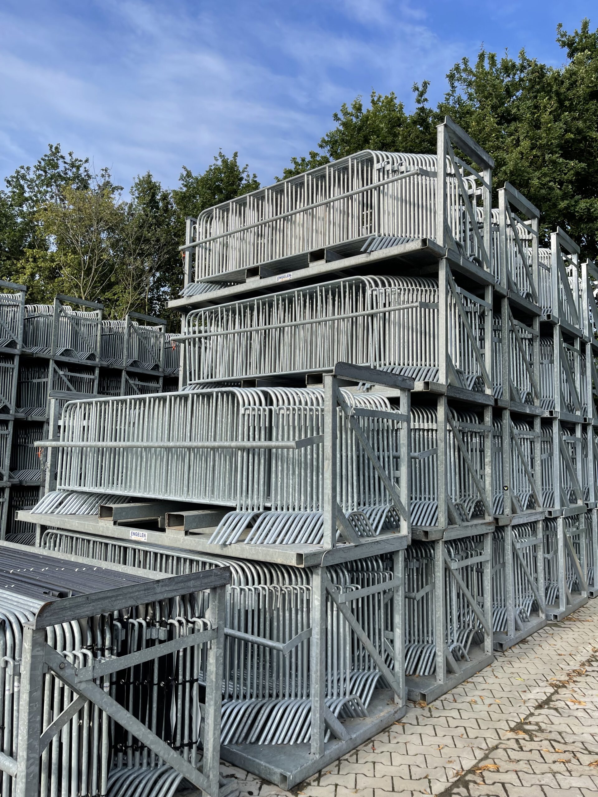 Op een beun zitten 40 dranghekken. De beun is gemakkelijk te verplaatsen met een heftruck.
