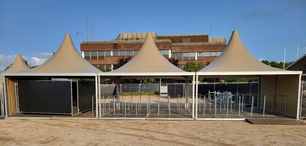 Lage toegangsluizen huren is de meest effectieve manier om de instroom van bezoekers op je evenement te reguleren. Deze sluizen creëren een overzichtelijke wachtrij bij de kaartcontrole of fouilleerposten, zonder dat het zicht op het terrein wordt geblokkeerd. Dankzij de open structuur van de lage hekken behoudt de beveiliging een optimaal overzicht over de menigte. Op die manier zorg je voor een rustige en ordelijke start van je evenement waarbij de veiligheid van de bezoekers gewaarborgd blijft.